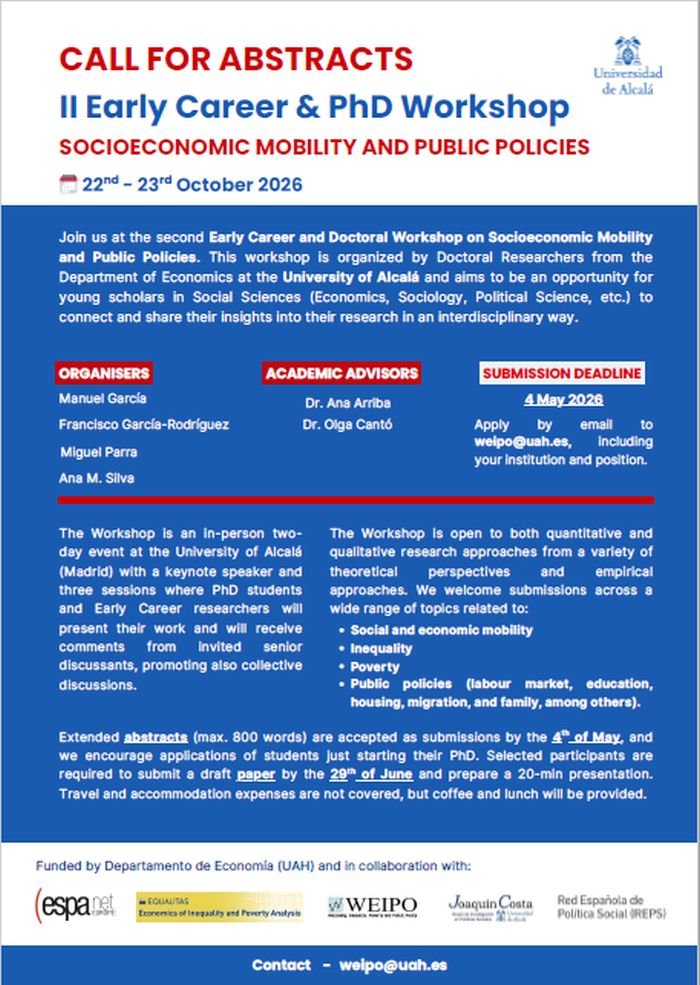 Call for Abstracts. Early Career and Doctoral Workshop on Socioeconomic Mobility and Public Policies